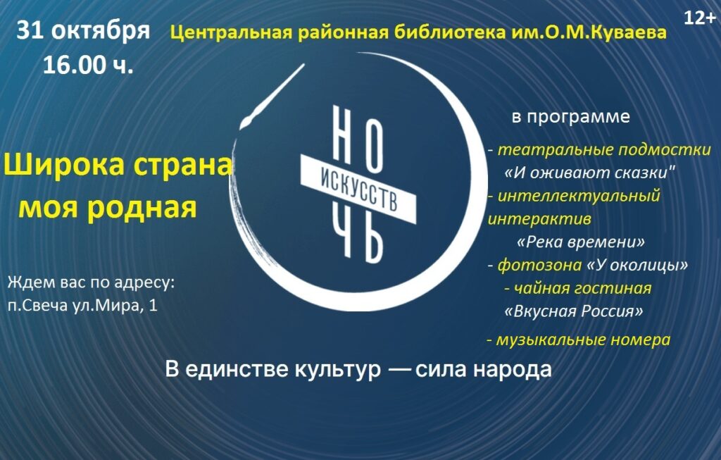 | Ночь искусств-2025 | 31 октября 16.00ч. | все категории | ЦБ |