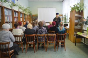 Словами о пользе чтения хороших, добрых книг открыл вечер клирик Никольского храма о.Игорь. Он говорил о том, что, в настоящее время увлекаясь телевизорами, мобильными телефонами, люди забывают о пользе чтения хорошей литературы. Забывая об этом они внутренне обкрадывают себя, ведь хорошая, добрая книга способна поддержать человека в трудную минуту, помочь преодолеть свои слабости и обрести веру и любовь к ближнему.