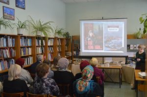 Затем мероприятие продолжила библиотекарь читального зала, Галина Анатольевна Шильникова. Она рассказала о том, что духовное начало, евангельское слово присутствует во многих произведения русских классиков, Н.В.Гоголя, А.С.Пушкина, Ф.М.Достоевского, Б.Васильева, Ю.Бондарева и др.